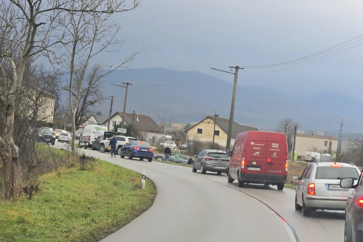 Vodiči, dávajte si pozor na ceste z Trenčína do Trenčianskej Turnej sa stala nehoda, začínajú sa tvoriť kolóny
