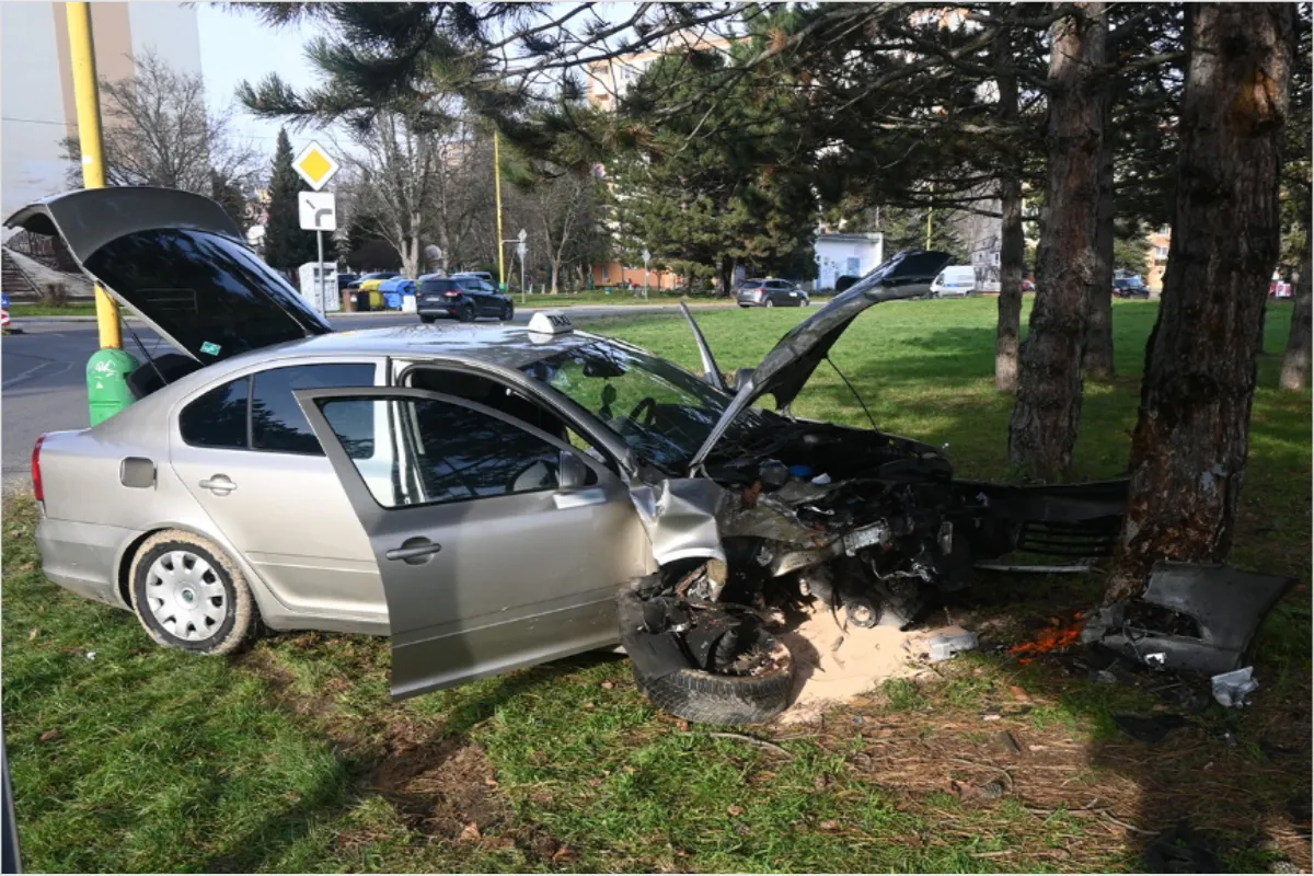 Nadrogovaná taxikárka narazila v Prievidzi do stromu, v aute viezla viaceré osoby, 18-ročná žena skončila v nemocnici