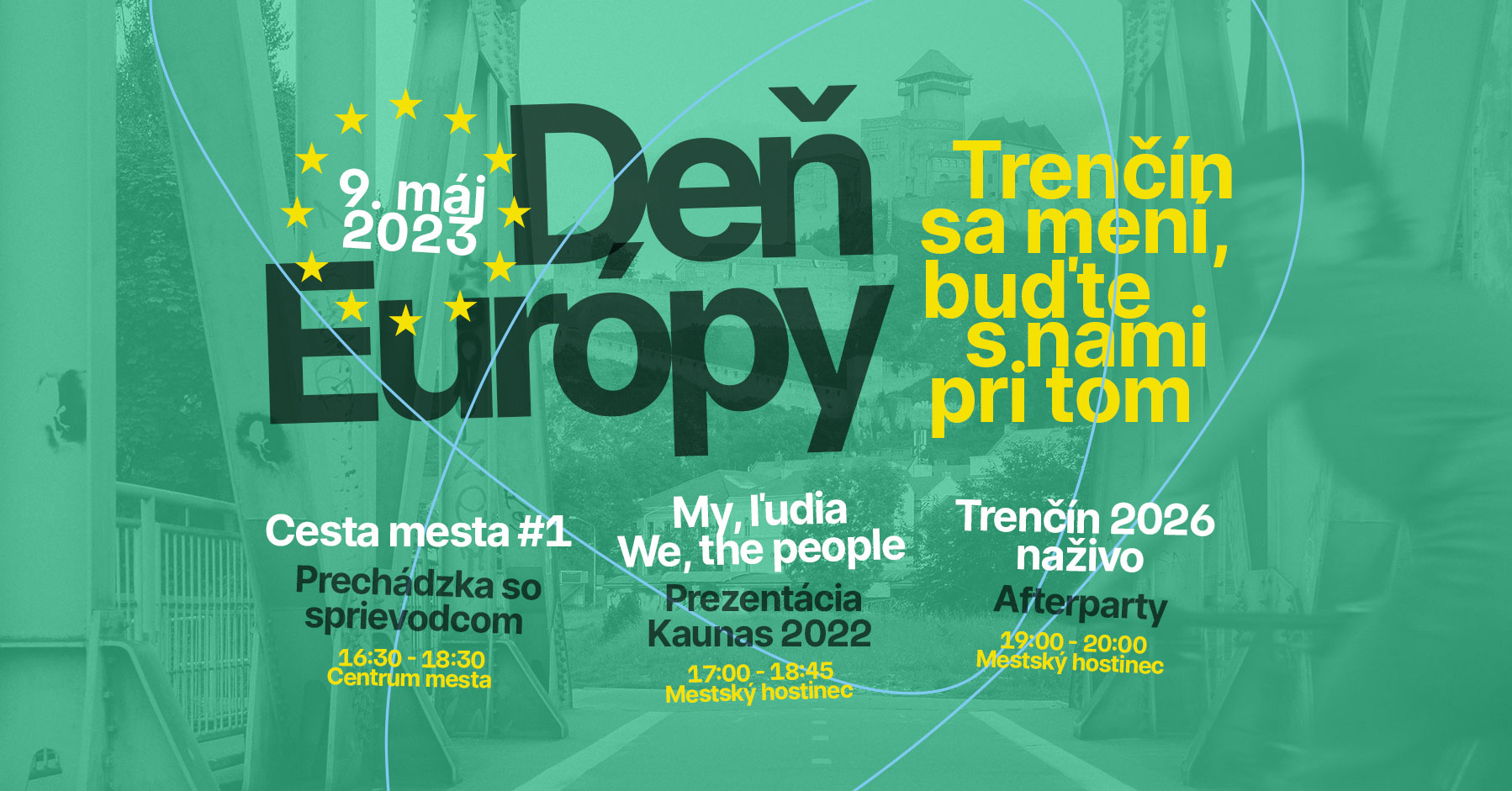 „Podujatia ku Dňu Európy sú súčasťou projektu Európskeho hlavného mesta kultúry Trenčín 2026. Trenčín 2026 finančne podporujú mesto Trenčín a Trenčiansky samosprávny kraj. Partnerom Trenčín 2026 je Európska únia,“ doplnil tím Trenčín 2026.