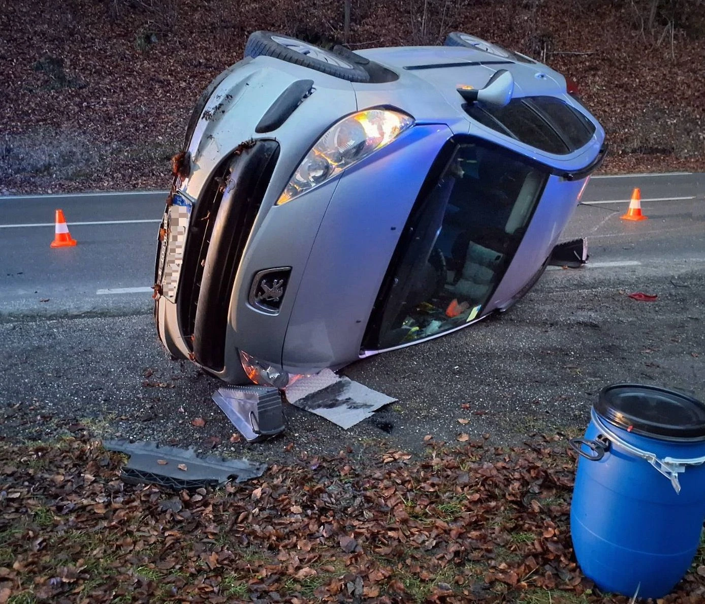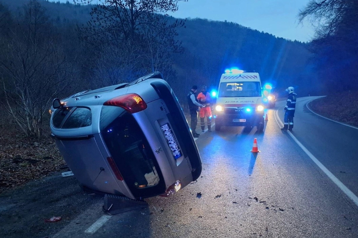 Pri dopravnej nehode v okrese Prievidza skončilo auto na boku, jedna osoba sa zranila, previezli ju do nemocnice