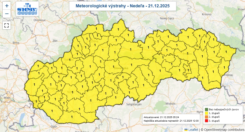 Trenčiansky kraj čaká v najbližších hodinách nepríjemné počasie. Slovenský hydrometeorologický ústav (SHMÚ) vydal výstrahu 1. stupňa pred hmlou, ktorá platí do stredy 23. decembra do 12:00 vo všetkých okresoch kraja.
