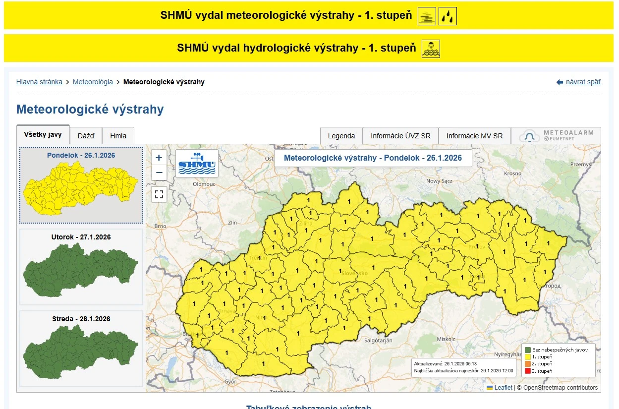 Posledný pracovný týždeň v januári začína pre obyvateľov Trenčianskeho kraja výstrahami, na pozore majú byť najmä vodiči