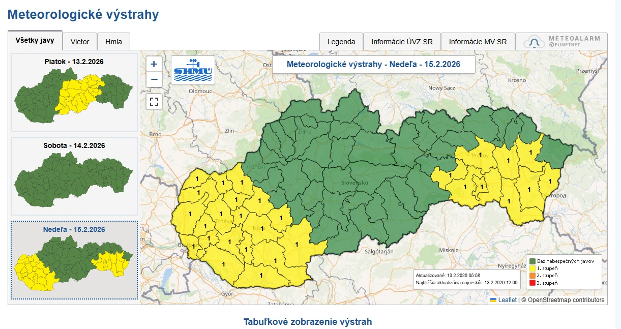 „Piatok a sobota ešte prinesú veľmi teplé počasie s maximálnymi dennými teplotami od +6 do +12 °C, pričom ojedinele môže byť aj teplejšie. V priebehu soboty však začne prenikať veľmi chladný vzduch, ktorý sa v nedeľu rozšíri aj nad celé naše územie," informuje Imeteo na svojom profile.