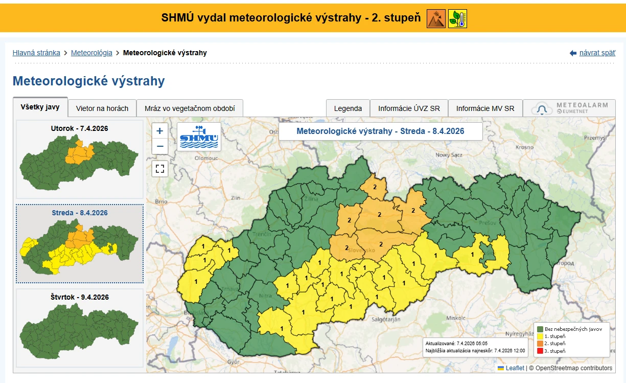 Pre okres Myjava vydal Slovenský hydrometeorologický stav výstrahu prvého stupňa pred prízemnými mrazmi. Tie môžu predstavovať riziko najmä pre ovocinárov, keďže nízke teploty ohrozujú rozkvitnuté stromy a úrodu v citlivej fáze vegetácie.