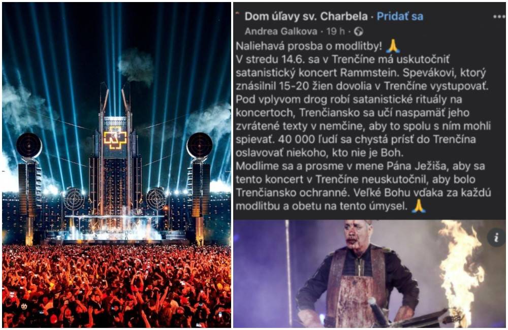 Celkom opačný pohľad na situáciu majú veriaci vystupujúci v mene Domu úľavy sv. Charbela v Prešove. V príspevku na sociálnej sieti totiž zvolávajú veriacich na adoráciu za zrušenie koncertu Rammstein a odprosenie za zlo. Tá sa uskutoční už dnes, v utorok 13. júna 2023, v kostole na sídlisku Juh v Trenčíne.
