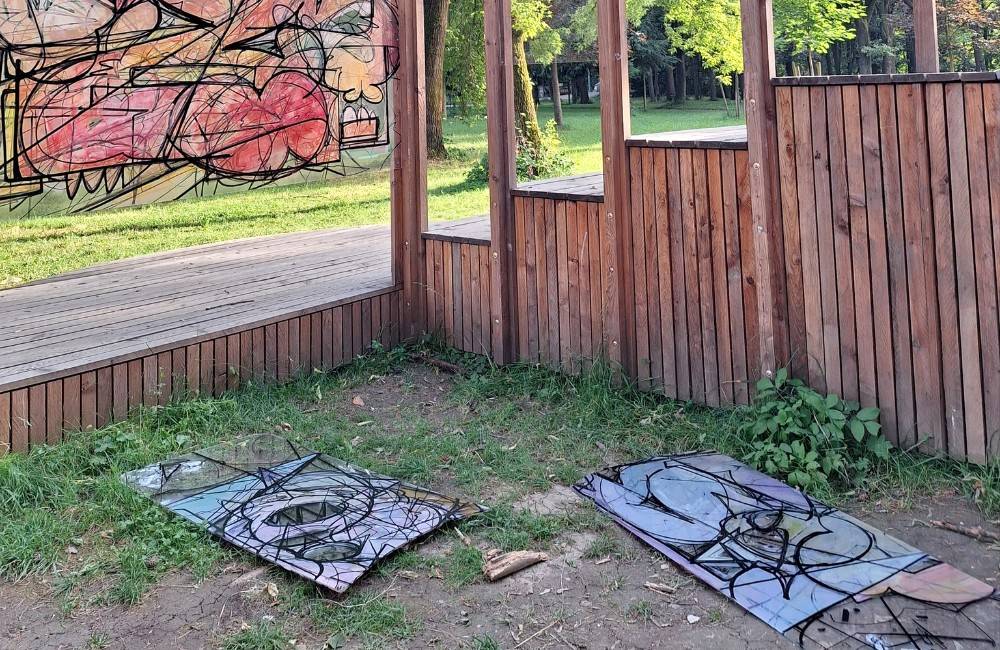 FOTO: Vandali zničili vystavené umelecké diela v prievidzskom mestskom parku