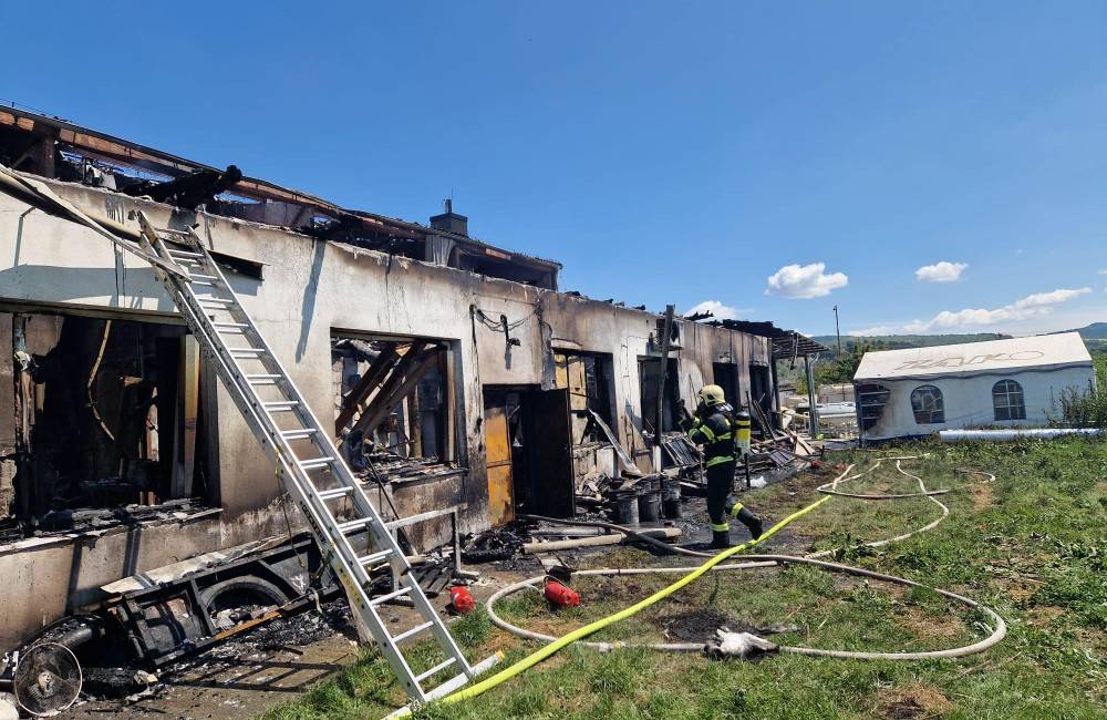 Hasiči z Trenčianskeho kraja pomáhajú pri hasení požiaru budovy v okrese Piešťany