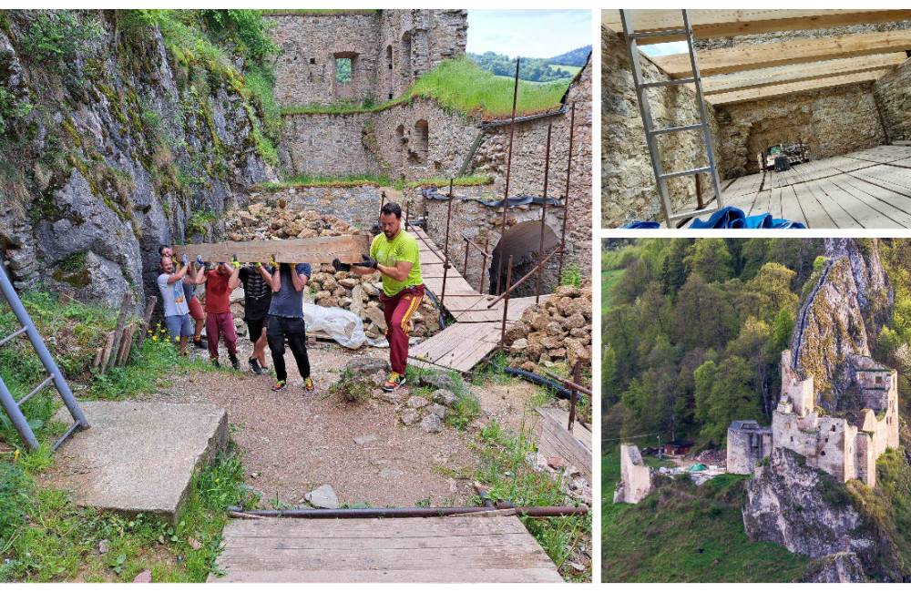 Siláci na hrade Lednica. Športovci si vyhrnuli rukávy a ratovali históriu