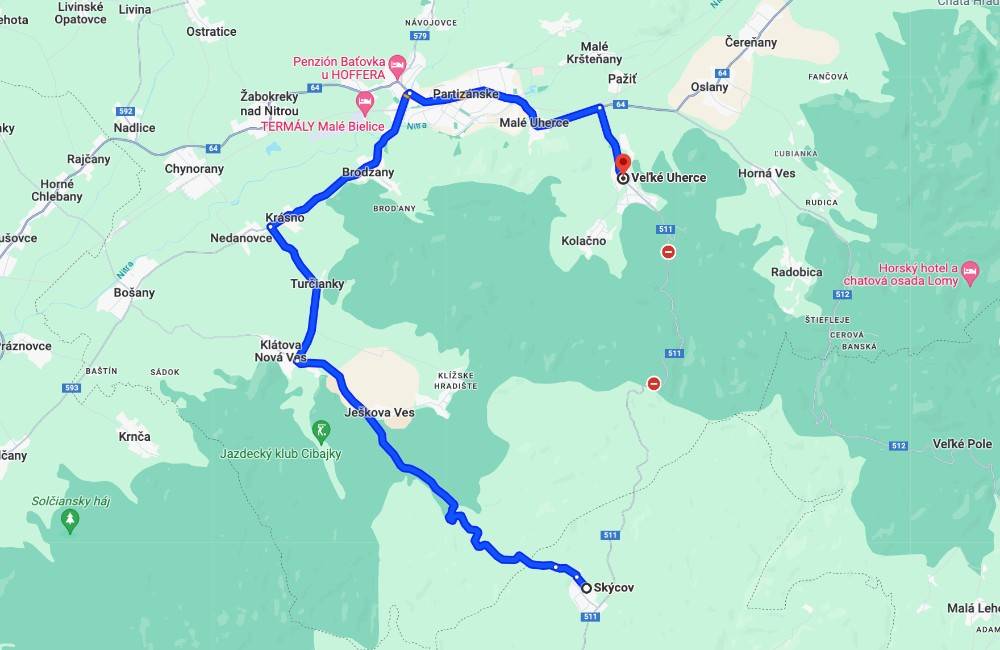 Cesta druhej triedy číslo 511 medzi obcami Veľké Uherce a Skýcov je od apríla 2023 dlhodobo uzavretá. Prebieha tu totiž rekonštrukcia, ktorej dokončenie možno očakávať najskôr v apríli 2024.