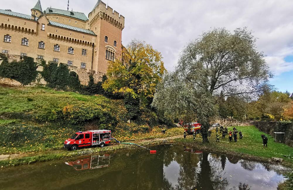 VIDEO: Poplach na zámku. Jednu z najromantickejších pamiatok na Slovensku obsadili desiatky hasičov
