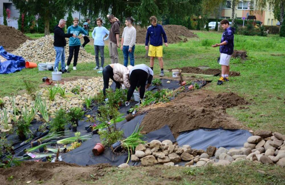 FOTO: Žiaci z Púchovskej školy nelenili a za týždeň im pod rukami vyrástla originálna dažďová záhrada