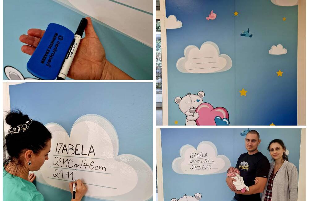 Vedenie pôrodnice v Považskej Bystrici si pre novopečených rodičov a ich ratolesti pripravilo netradičnú novinku. „Od dnes na pôrodníckom oddelení môžu naše pacientky a ich návštevy využiť fotokútik, a vytvoriť si tak spomienku na našu pôrodnicu,“ oznámila pôrodnica na svojich stránkach s tým, že vo vytvorenom priestore si môžu rodičia napísať meno, miery alebo dátum narodenia bábätka.