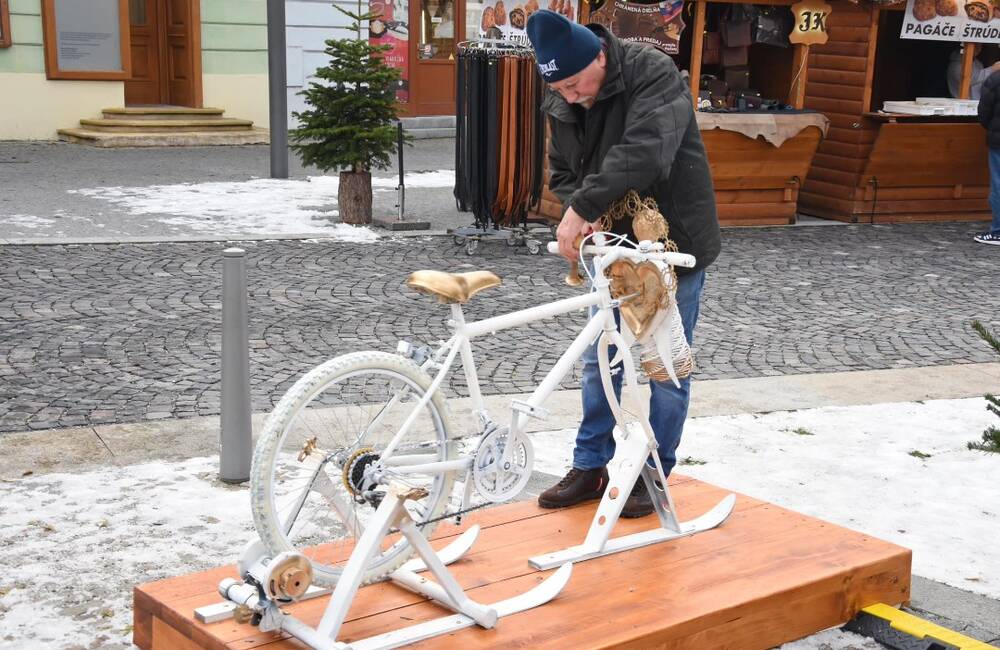 „Druhý bicykel som mal ja a na tom sme sa vozili po svahu. Bol len s jednou lyžou, tento na námestí má tri. Stojan na trenažér som kúpil, dá sa na ňom nastaviť záťaž pri bicyklovaní. Snažili sme sa to urobiť primárne pre deti, ale môžu to vyskúšať aj dospelí,“ doplnil J. Syrový.