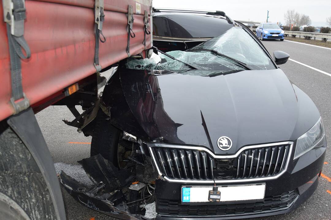 O veľkom šťastí môže hovoriť 52-ročný vodič, ktorý na diaľnici D1 v smere na Žilinu v dôsledku únavy dostal mikrospánok a pravou prednou časťou svojho vozidla narazil do návesu pred ním idúceho kamióna.