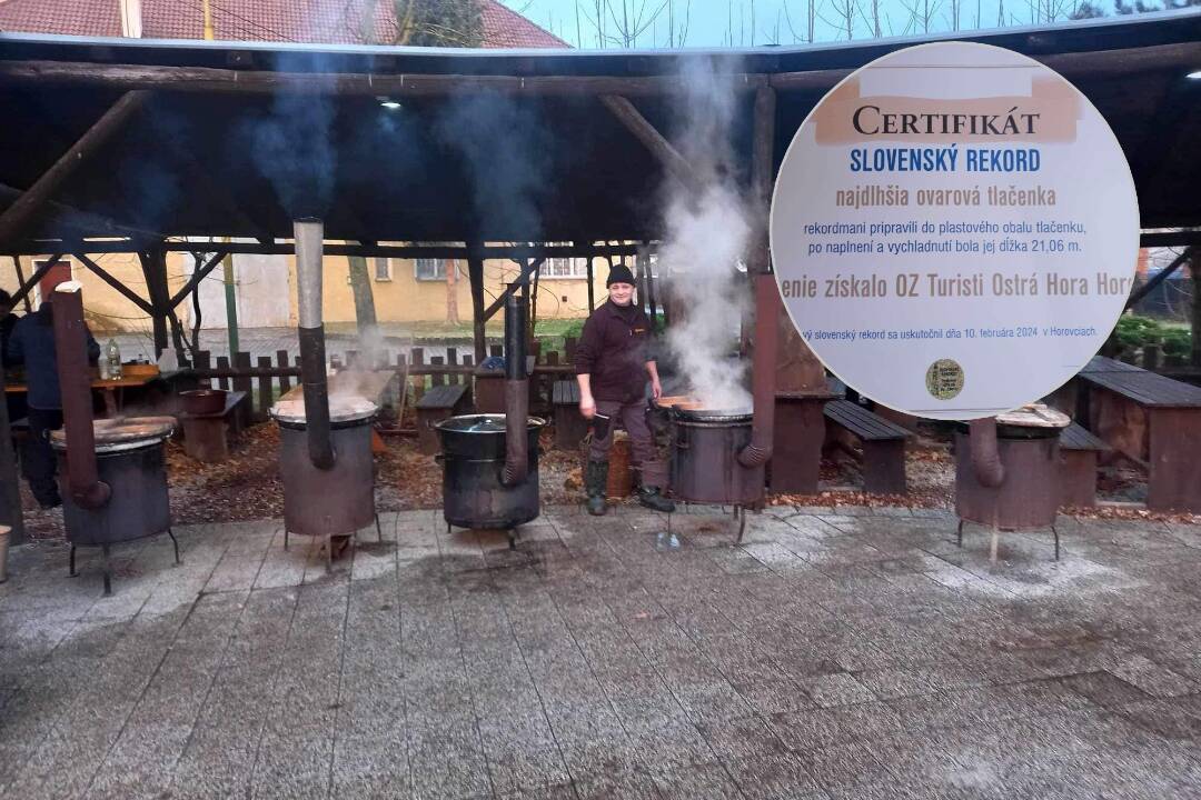 Na prípravu tohtoročnej typicky zabíjačkovej špeciality použili „Bociani“ takmer 130 kilogramov bravčového mäsa a tlačenku niekoľko hodín pripravovali v 6 kotloch. Výsledok stál rozhodne za to. Pred pár dňami obec na sociálnej sieti informovala, že minuloročný rekord sa podarilo prekonať a občianske združenie sa môže popýšiť oficiálnym slovenským rekordom.