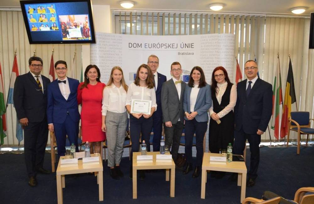 Studenti gymnázia si ocenenie prevzali na slávnostnom vyhlásení výsledkov v Bratislave za účasti poslancov Európskeho Parlamentu - Moniky Beňovej, Ivana Štefanca, Vladimíra Maňka a Jany Žitňanskej.