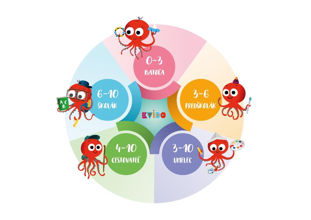Kvído je bystrá hravá chobotnička, ktorá je vynaliezavá, zaujímajú ju hry a hádanky, a vďaka tomu prebúdza v deťoch záujem o poznávanie sveta okolo nás.