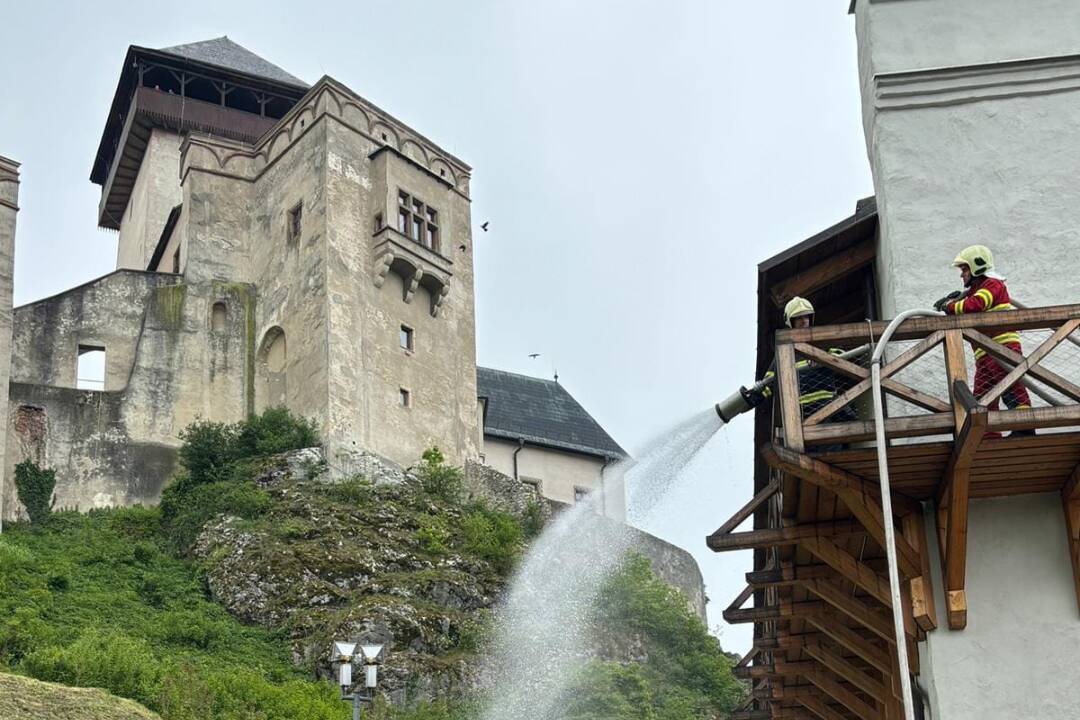 FOTO: Na Trenčianskom hrade zasahovali hasiči. Dostať sa tam s technikou je ale riadna fuška