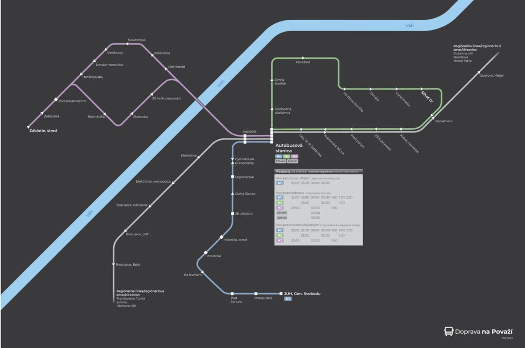 Schéma návrhu nočných liniek MHD. Zdroj: Mesto Trenčín