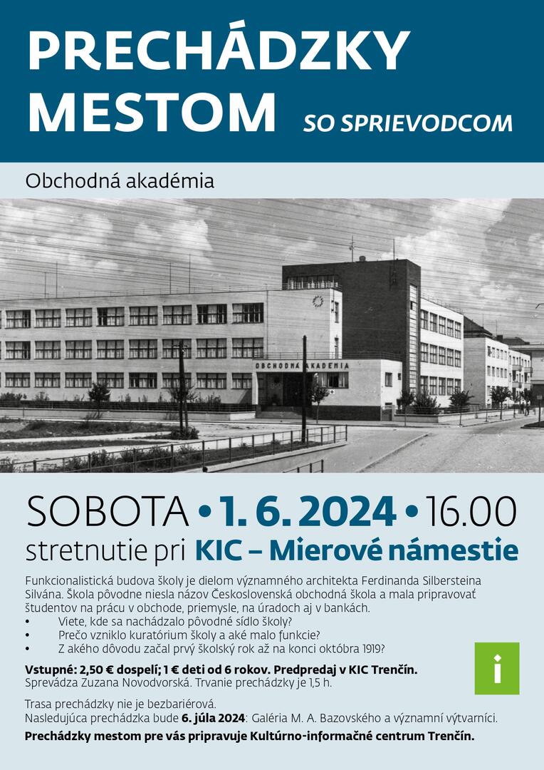 V sobotu 1. júna vás mesto Trenčín pozýva na ďalšiu prechádzku z obľúbeného cyklu Prechádzky mestom so sprievodcom. Ústrednou témou tentokrát bude Obchodná akadémia.