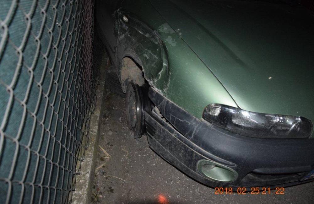 Ani po tejto udalosti však auto nezastavil a pokračoval v jazde smerom na ul. Mostíková. Tam odbočil doprava a s vozidlom ostal stáť. Na aute bola vyzutá pravá predná pneumatika, čo znemožnilo vodičovi ďalšiu jazdu. 23-ročný mladík aj napriek tomu zaradil spiatočku a narazil do oplotenia rodinného domu.