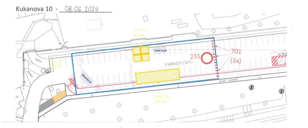 Pre potreby podujatia, predajné stánky, obslužné zariadenie, zázemie a podobne bude vyhradených približne 50 parkovacích miest. Čiastočná uzávierka začala už v piatok 6. júna od 6:00 hod. a potrvá do nedele 9. júna do 12:00 hod.
