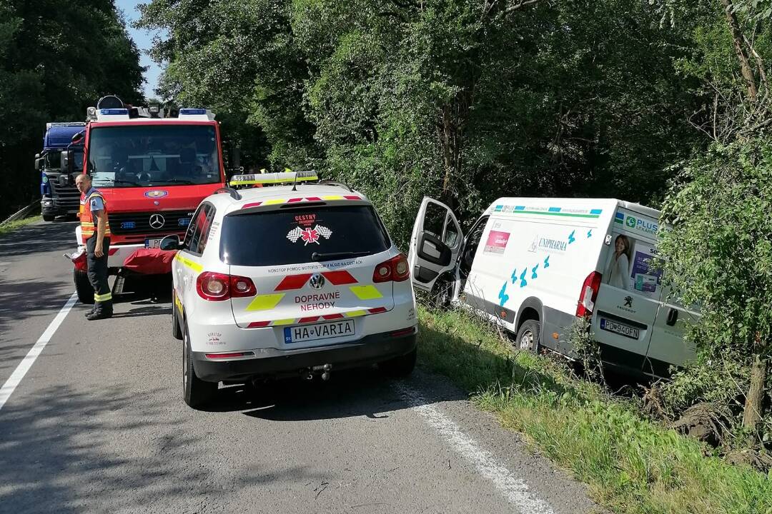 Dopravná nehoda na ceste I/64 za Kľačnom smerom do Prievidze. Dodávka skončila v priekope