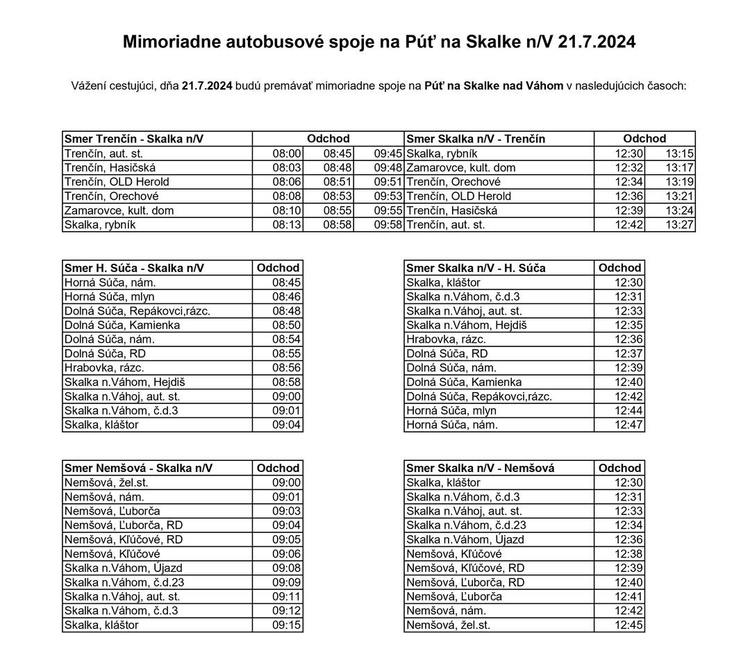 Z dôvodu podujatia posilnili aj autobusové spoje, ktoré pôjdiu nasledovne: