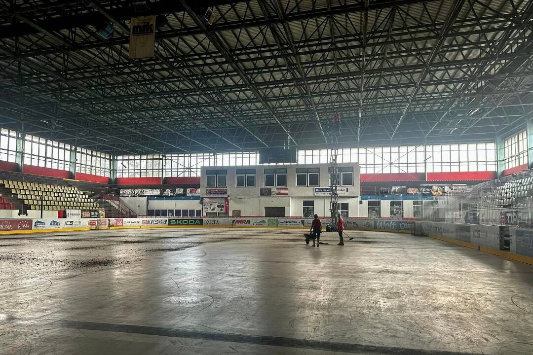 Na zimnom štadióne v Považskej Bystrici finišujú s výmenou osvetlenia. Zo starého už padala hrdza na ľad