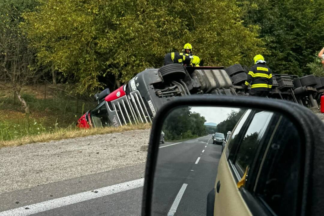 V Brezolupoch smerom na Bánovce nad Bebravou je prevrátený kamión. Počítajte so zdržaním