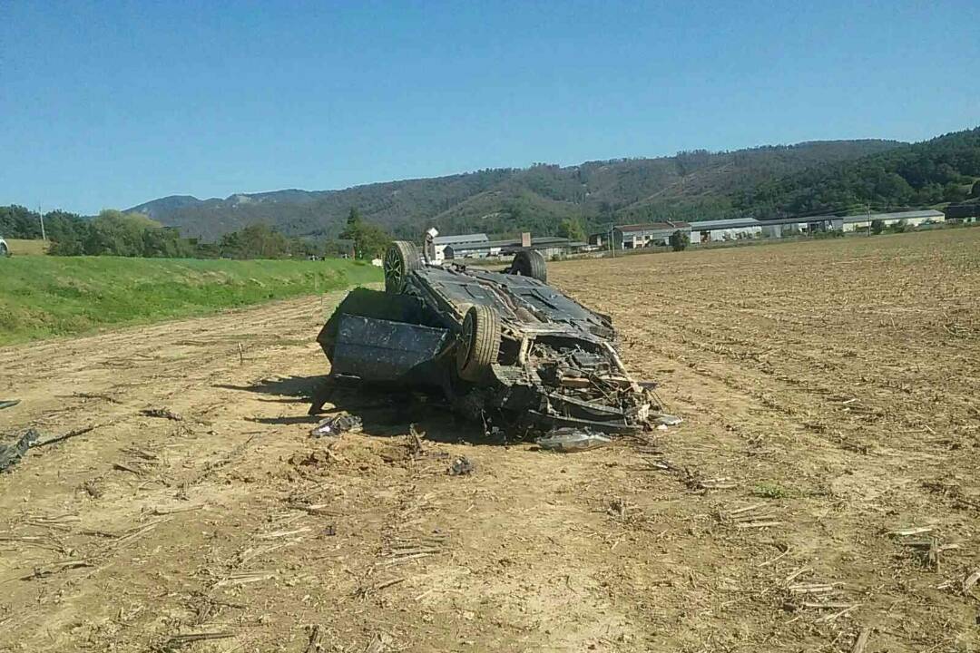 Pri Bánovciach nad Bebravou došlo k vážnej dopravnej nehode. Auto skončilo na poli prevrátené na streche