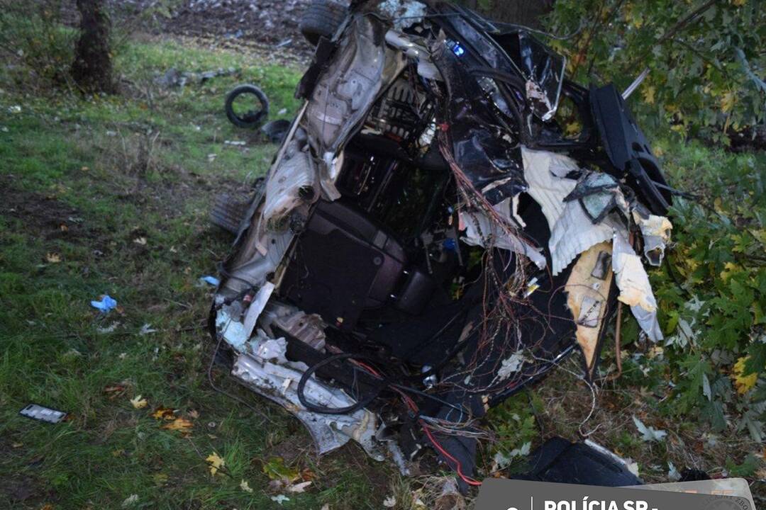 FOTO: Na ceste z Bánoviec roztrhol auto na polovicu, nehode predchádzala vysoká rýchlosť a šmyk