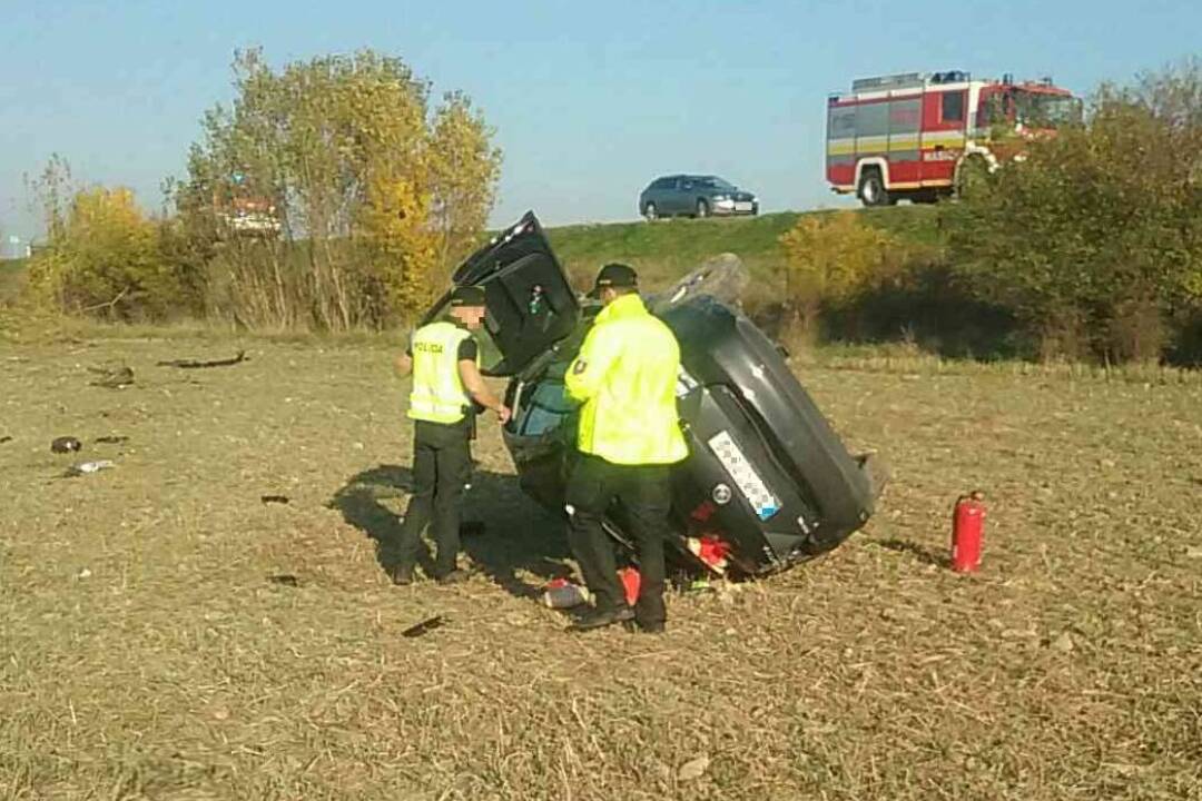 FOTO: Na D1 pri Košeci došlo k vážnej dopravnej nehode. Auto skončilo prevrátené mimo cesty