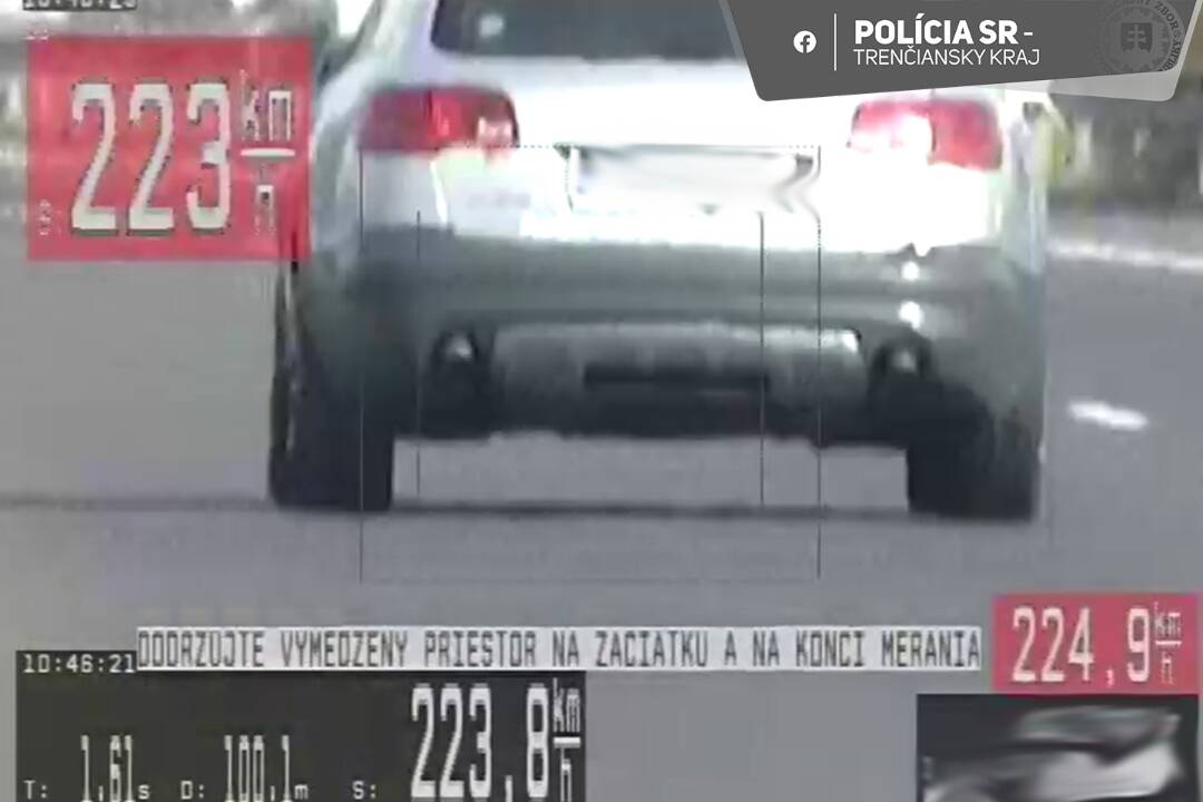 Policajti diaľničného oddelenia z Trenčína zaznamenali na diaľnici D1 v smere od Nového Mesta nad Váhom k Žiline extrémne prekročenie rýchlosti. Incident sa odohral v katastri obce Chocholná-Velčice.