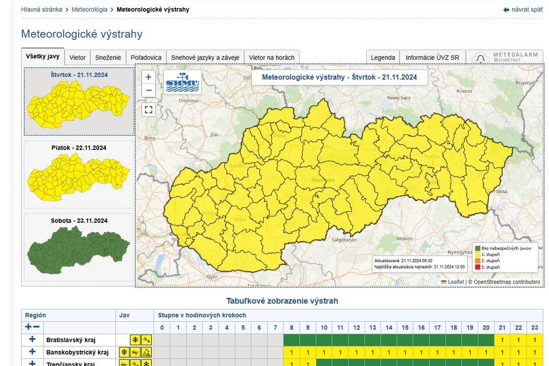 Výstraha platí na celom Slovensku od 21.11.2024 18:00 do 22.11.2024 08:00.