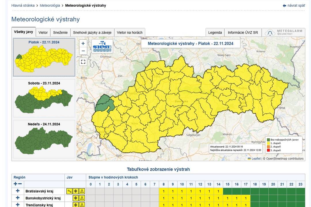 Výstraha platí v Trenčianskom kraji do 22.11.2024 18:00.