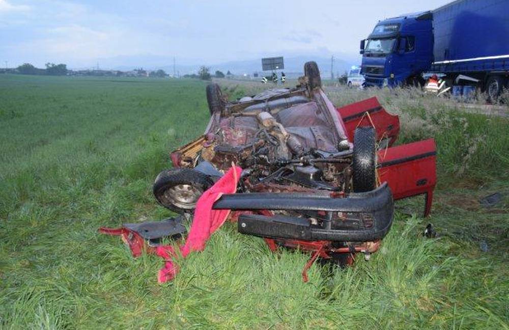 „V dôsledku nárazu jazdnú súpravu skrútilo, následne prešla šmykom do protismeru, kde do jej pravej prednej časti narazilo vozidlo Škoda, ktoré viedol vodič 67-ročný Emil z okr. Trenčín (jazdil v smere od Drietomy na Bánovce nad Bebravou) Po náraze vozidlo Škoda odhodilo vpravo mimo cestu, kde sa prevrátilo na strechu. Jazdná súprava ostala stáť na kolesách na ceste I/9,“ uviedla Elena Antalová, hovorkyňa KR PZ v Trenčíne.