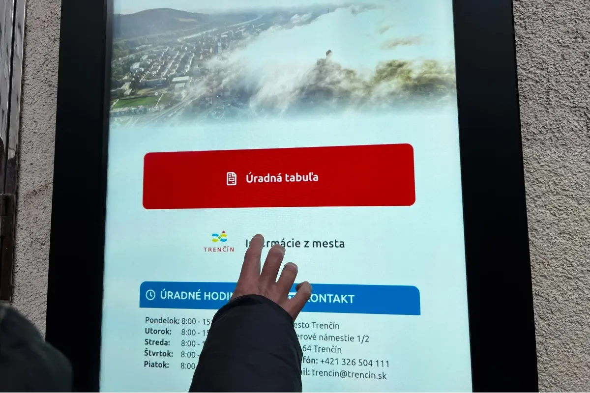 FOTO: Koniec papierových oznamov. Na budove Mestského úradu v Trenčíne pribudla digitálna tabuľa