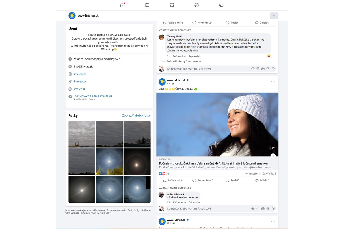 Dnešok sa bude niesť v duchu tlakovej výše, bez výrazného vetra, či zrážok, pokojné počasie však naruší studený front, ktorý poveternostné podmienky zásadne zmení. „Na západe sa postupne rozfúka juhovýchodný vietor rýchlosťou do 30 km/h,“ vysvetľuje Imeteo na sociálnej sieti. V noci klesne teplota pod bod mrazu, miestami až do - 8 stupňov a denné tepoty počas zvyšku týždňa vyjdú maximálne do 3 stupňov Celzia. Každým dňom sa bude ochladzovať, v stredu bude dokonca možno snežiť.