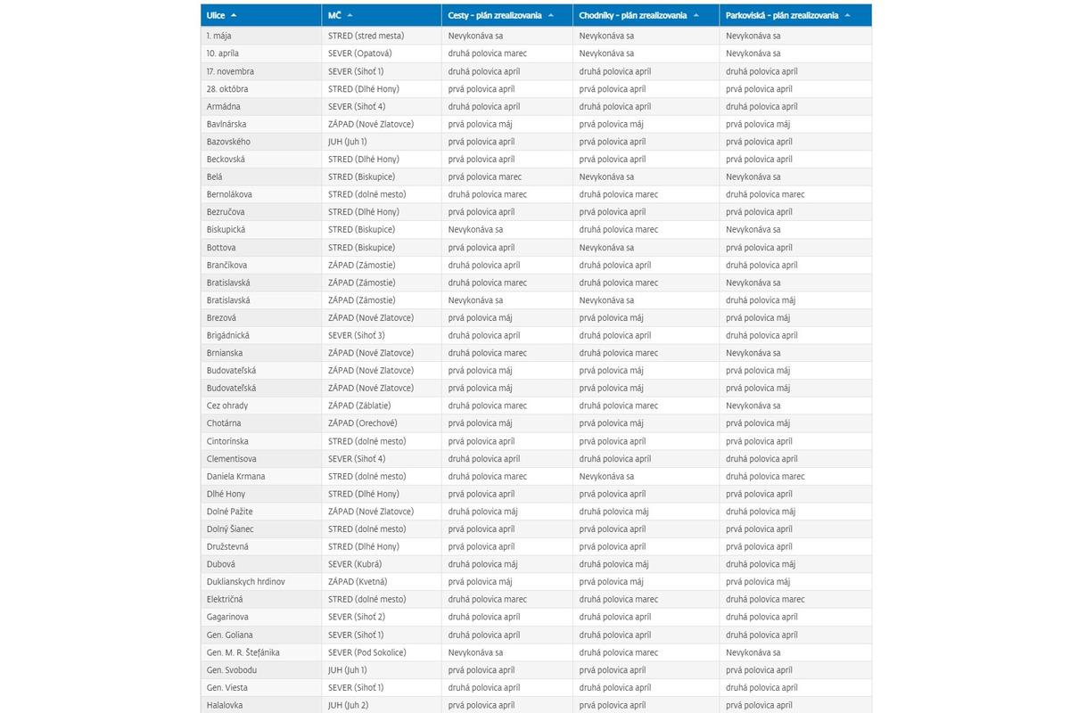 „Prosíme vás, aby ste rešpektovaním prenosného zvislého dopravného značenia a s tým spojeným preparkovaním áut prispeli k čo najlepšiemu vyčisteniu nášho mesta. Ďakujeme! “ dodáva mesto na stránke. Na termíny môžu okrem poveternostných podmienok vplývať aj dopravná situácia, či nepredvídateľné okolnosti.