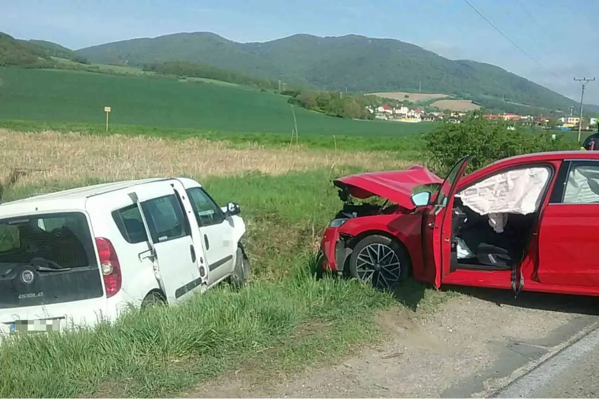 FOTO: Pri Trenčíne sa zrazili dve autá. Jedno z nich skončilo v priekope, zranili sa štyria ľudia