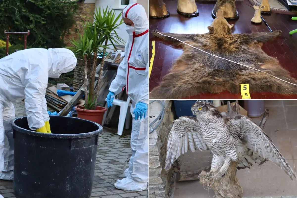 Počas domovej prehliadky objavili envirokriminalisti množstvo nelegálnych preparátov – medzi nimi štyri kože medveďa hnedého (Ursus arctos), preparát myšiaka štvorfarebného (Parabuteo unicinctus) či jastraba veľkého (Accipiter gentilis). V zozname neživých chránených živočíchov sa nachádzali aj štyri hlucháne hôrne (Tetrao urogallus), dve kačice chrapky (Anas crecca) a čajka striebristá (Larus argentatus).