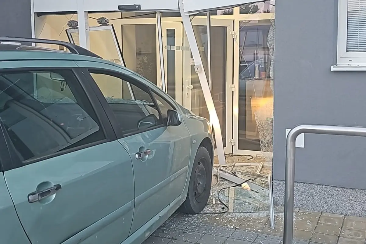 FOTO: Muž pod vplyvom drog úmyselne nabúral autom do policajnej budovy v Prievidzi, úplne zničil presklenné dvere