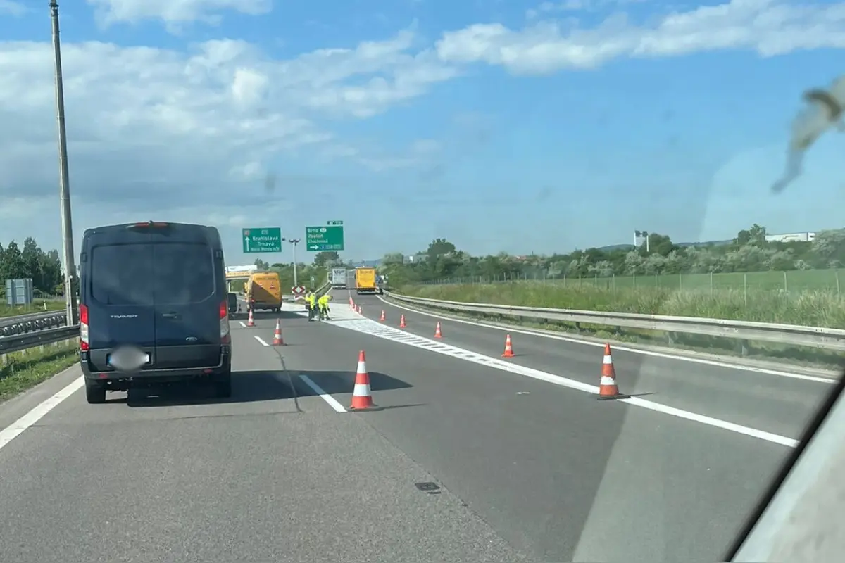 Vodiči, opatrne na D1 pri Trenčíne v smere do Bratislavy, pracujú tam cestári, premávka je spomalená (FOTO)