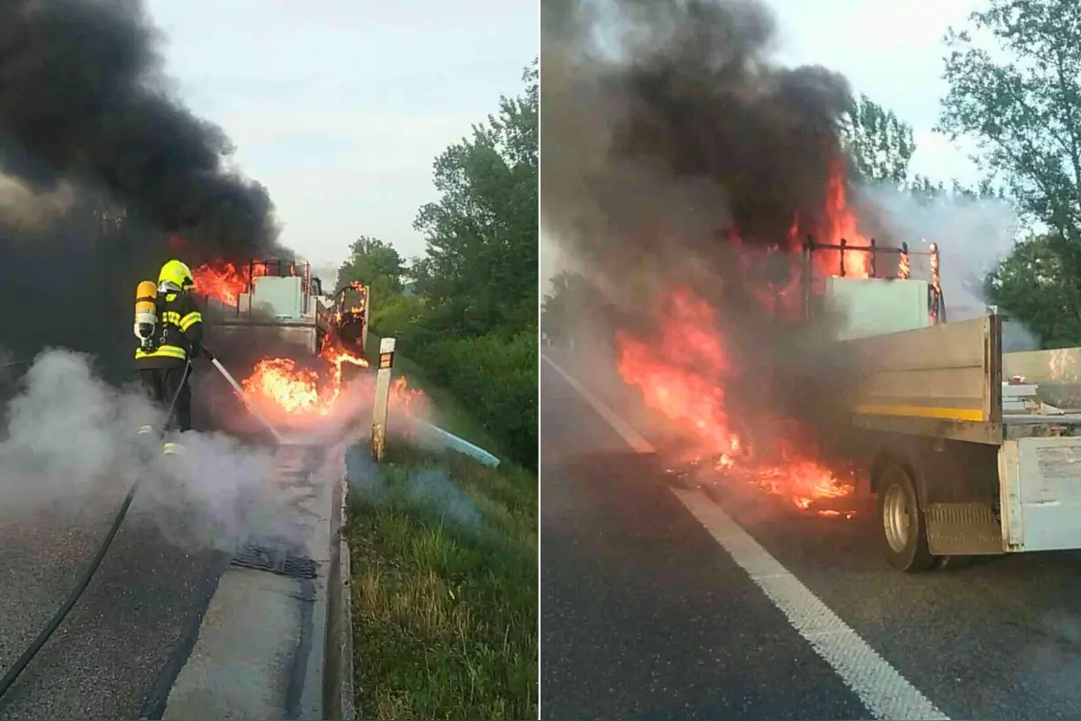 FOTO: Na D1 horelo nákladné auto, zo šľahajúcich plameňov posádka zázrakom vyviazla bez zranení