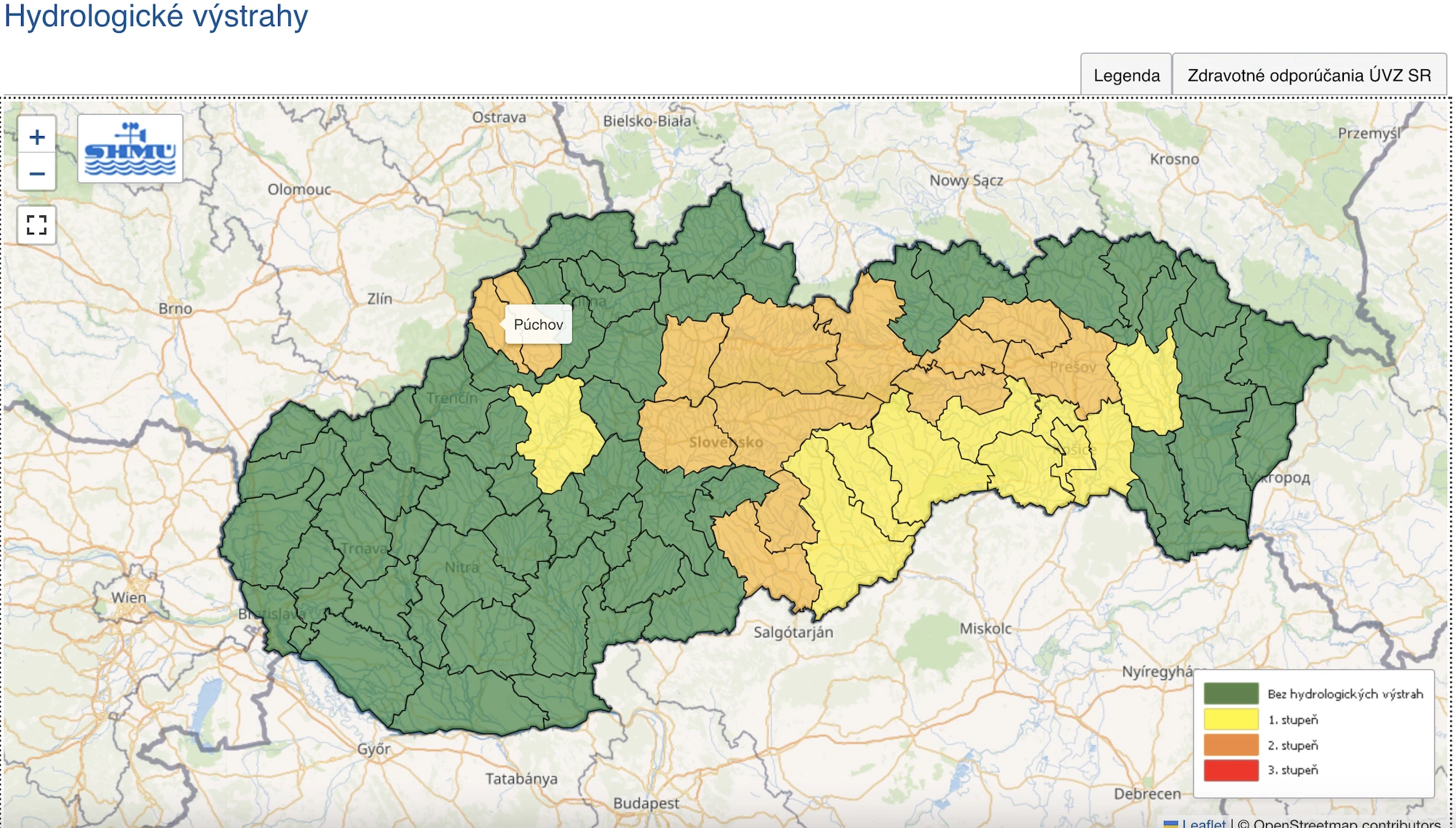 Slovenský hydrometeorologický ústav (SHMÚ) vydal hydrologické výstrahy druhého stupňa pre dva okresy Trenčianskeho kraja. Dôvodom sú očakávané intenzívne búrky, ktoré môžu spôsobiť náhly nárast vodných hladín a prívalové povodne, najmä v Púchove, Považskej Bystrici a v Prievidzi.