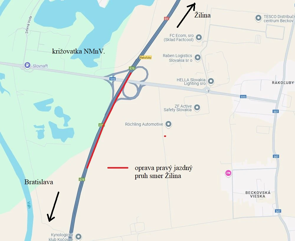 Motoristi by si mali v danom úseku dávať pozor na dočasné dopravné obmedzenia a pripraviť sa na mierne spomalenie premávky počas opravárskych prác.