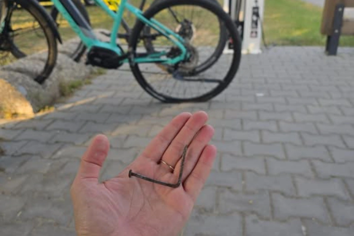 „Milí Trenčania, dajte pozor na cyklotrase smerom do Opatoviec - nejaký "dobrák", ktorému zrejme na cyklotrase vadia cyklisti, tam nechal takéto "dárečky". Našli sme ich viacero a jeden z nich sa ušiel aj mne, takže týmto dotyčného pozdravujem a odkazujem mu iba, že karma je zdarma," odkazuje Lucia na sociálnej sieti.