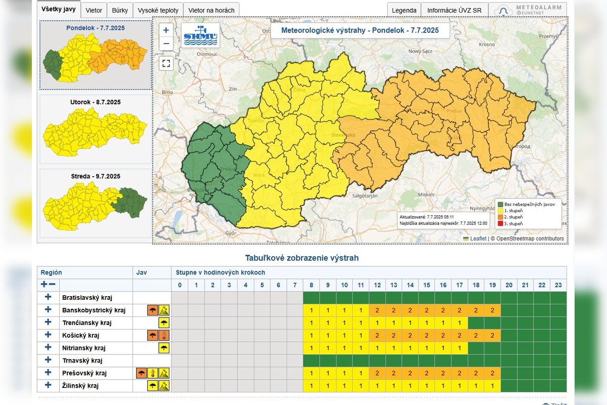 Včera večer zasiahli Trenčiansky kraj intenzívne búrky. Tie priniesli potrebnú vlahu aj ochladenie, no zdá sa, že ešte dajú o sebe vedieť. Metodológovia zo Slovenského hydrometeorologického ústavu (SHMU) vydali výstrahy pred intenzívnymi búrkami aj v pondelok 7. júla.