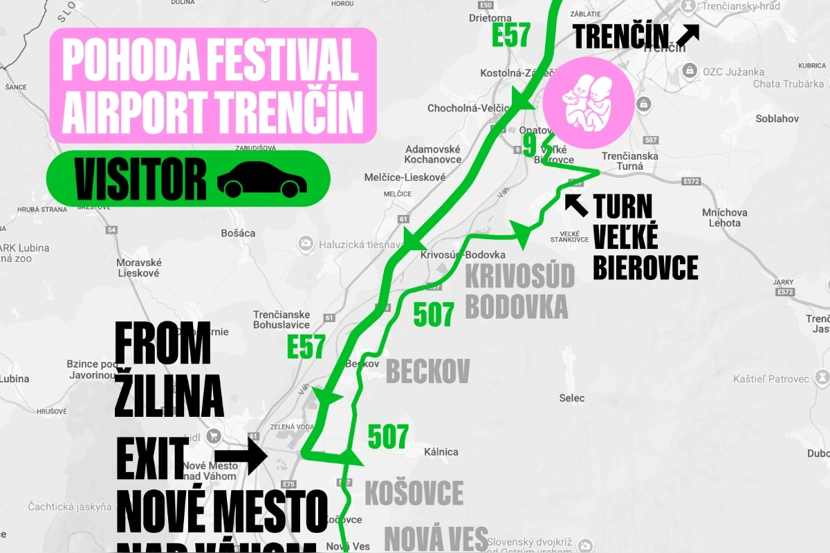 Organizátori pripomínajú, ako sa na Pohodu najjednoduchšie dostanete. „Zo strany Biskupíc sa k nám dostanete pešo, na bicykli, kyvadlovou dopravou, ale môže vás odviezť aj taxík alebo kamoš / kamoška na aute v prípade, že nechce na mieste parkovať."